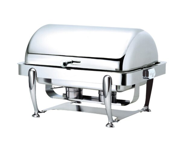 Aço inoxidável 18/10 de alta resistência à corrosão Acabamento espelhado polido A unidade vem completa com inserto de aço inoxidável de 65 mm, bandeja de água e suporte para o combustível Global Chafing Fuel. A parte superior totalmente enrolável está posicionada a 90 e 180 graus. O sistema de embreagem impede o fechamento inesperado da tampa. A 180 graus, os alimentos podem ser carregados por ambos os lados, sendo acessíveis de todas as direções. Os orifícios de ventilação reduzem a condensação. Tampa removível para facilitar o manuseio e a limpeza. Aquecimento bidirecional, combustível ou elemento de aquecimento Pés modernos em…